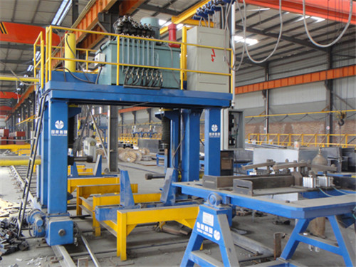 型箱組立一體機用于箱型柱組裝中U型和箱型的組裝成型。板材放置在帶有輔助對中裝置的支架上,電機驅動行走門架進入工作區域,行走門架上的壓缸壓緊工件的腹板及翼板組裝成型并點定焊。